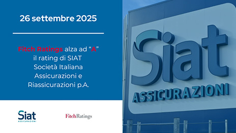 - We are proud to announce that Fitch Ratings has raised the credit rating of SIAT – Società Italiana Assicurazioni e Riassicurazioni S.p.A. – to "A" with a stable outlook.